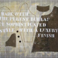 Acrylique et matériaux divers, sac de toile de jute, sur toile,